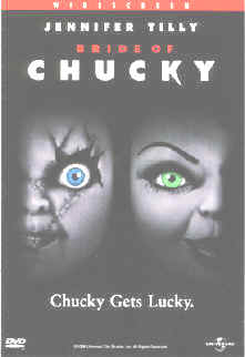 For a normal DVD release, “Bride of Chucky” comes with a lot of the extras found on special editions. For instance, you get not one but two running audio commentaries. One features the film’s director, Ronny Yu, waxing eloquently (as well as he can in his limited English) about bringing his Hong Kong sensibilities to an American horror franchise. The second audio commentary features those darlings of the doll world, stars Brad Dourif and Jennifer Tilly, plus creator-writer Don Mancini. Theirs is a much more lively conversation, with the stars offering numerous interesting insights into playing killer dolls. Mancini checks in with his observations about creating an endearing horror franchise like the ones he grew up on. There’s also a “Spotlight On” segment that goes behind the scenes of the film, and features both talent in front of and behind the camera. Chucky creator Kevin Yagher discusses the transformation of Chucky from a co-star to star. The DVD also features Jennifer Tilly’s diary while making the film (some really funny observations), a history of the Chucky films, plus a healthy dose of production notes and talent bio (Brad Dourif’s bio also includes a trailer for “Child’s Play 2“), and handsome and efficient menus. Not bad for a DVD that isn’t being billed as a “special edition.”